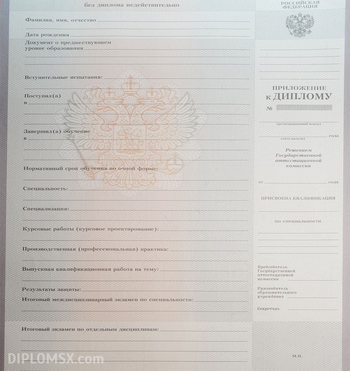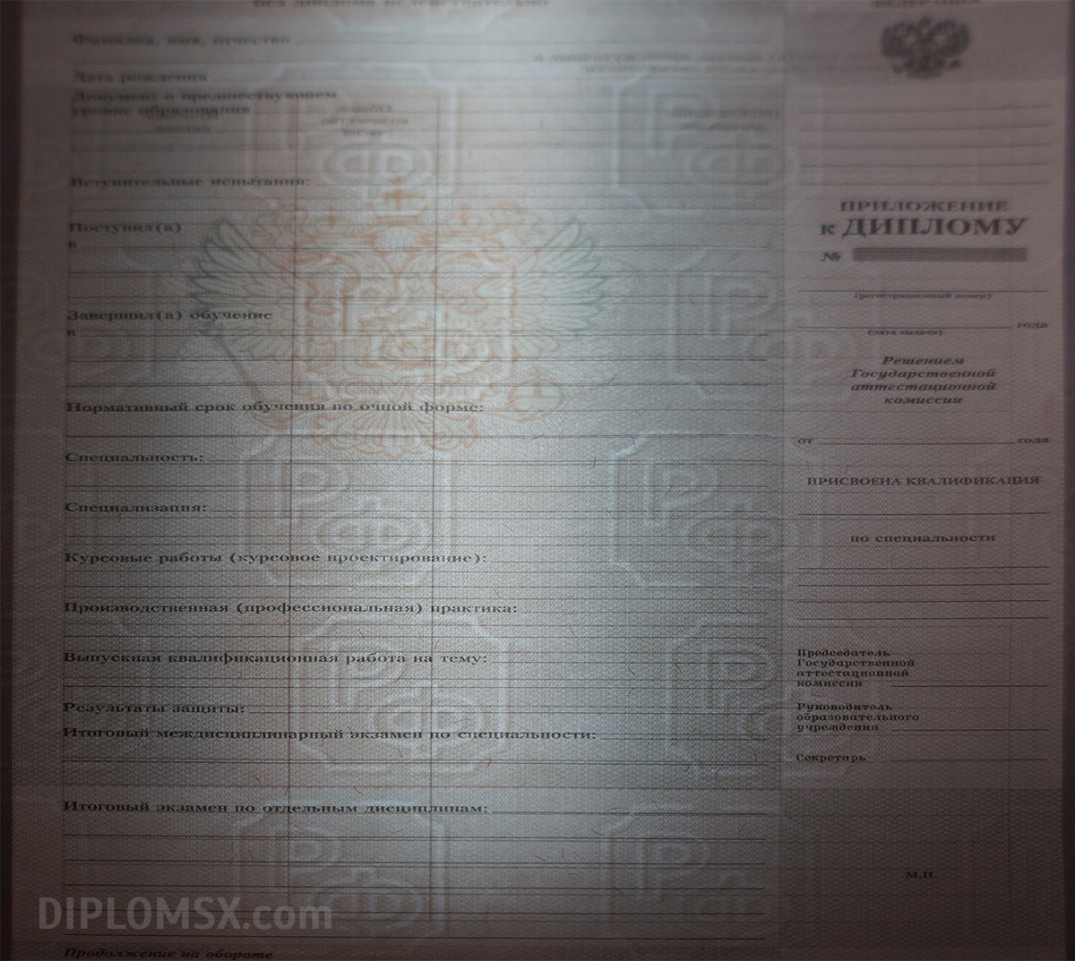Изготовим не только сам диплом, но и вкладыш с указанием пройденных дисциплин, потраченных на изучение часов и заработанных при сдаче экзаменов и зачетов отметок. К такому диплому техникума не смогут возникать вопросы ни у кого, он не вызовет сомнений ни у работодателей, ни у членов приемных комиссий институтов.